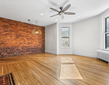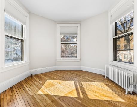 Bright and charming 2-bed, 1-bath condo in a converted Victorian just steps from Washington Square and Coolidge Corner. Big windows overlook mature trees, giving the home a peaceful feel. Inside, youll find a spacious layout with a sunny living room and a welcoming entry with a coat closet. The dining area opens to a warm, character-filled kitchen with exposed brick, a butcher-block breakfast bar, gas cooking, and new appliances. A completely renovated bathroom rounds out this home. Enjoy exclusive covered parking, shared outdoor space for gardening or relaxing, and extra basement storage. One block to the Green Line (C) and close to Driscoll School, Griggs Park, shops, and restaurants.