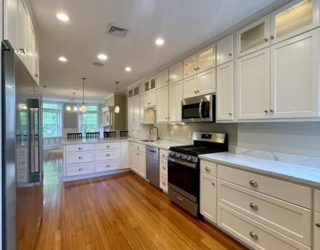 Nestled on one of Brooklines most desirable tree-lined streets near Dean Park, ideally situated just off Beacon Street between Cleveland Circle and Washington Square, this stunning home offers the perfect blend of charm and modern luxury.This immaculate 3-bedroom, 2-bathroom residence has been fully renovated from head to toe with exceptional attention to detail. The expansive, beautifully updated kitchen is a true centerpiece, featuring high-end finishes and ample space for both everyday living and entertaining. Throughout the home, youll find elegant touches including recessed lighting, crown molding, and a cozy fireplace that adds warmth and character. The spa-like primary bathroom boasts a luxurious steam shower, creating a private retreat within your own home.Additional highlights include two included outdoor parking space an incredible convenience in this sought-after location.