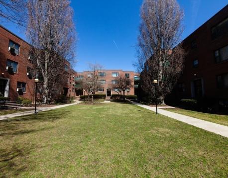 This very spacious top floor unit has great views of the lush courtyard below. Nestled in the heart of Brookline with easy access to a variety of restaurants, schools, universities, hospitals, shopping and much more. This two bed two bath unit has many closets and an additional office nook with french doors. An outdoor covered balcony and rent includes a garage parking space. There is common laundry downstairs and a large deeded storage. Available July 1 move in .Unit is lead certified.