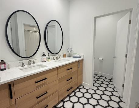 Not Brookline (On the line) Exceptional new construction single-family home on the Brookline/Jamaica Plain line, just moments to Larz Anderson Park, The Park School, Dexter Southfield, and The British International School. This architecturally striking 5-bedroom, 3.5-bath home features an attached 2-car garage and dramatic contemporary design with expansive windows and wide-plank hardwood floors throughout.The open-concept main level offers seamless flow between living, dining, and a sleek chefs kitchen with custom cabinetry, high-end appliances, large island, and walk-in pantry. The spacious primary suite includes a luxurious bath and oversized walk-in closet. The second floor has three spacious bedrooms and modern full bathroom. The finished lower level provides a bonus room, storage, laundry, and an additional flexible room ideal for office, prayer space, or gym. Private patio and large yard complete this exceptional offering.