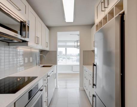 Available July 1, 2026. Rare bright corner 1-bedroom in the heart of Coolidge Corner. Beautifully renovated with an expansive, light-filled living space and direct access to a large private balcony. Well-designed layout offers a defined dining area by an oversized window, ideal for dining or working from home. Spacious bedroom with walk-in closet and additional storage. Equipped with high-efficiency ductless mini-split A/C; central heat via modern hydronic panel radiators.Professionally managed building with renovated common areas, modernized elevators, state of the art security system, and modern package room. Garage parking included. Steps to the Green Line, Trader Joes, restaurants, and shops, with easy access to Longwood Medical Area, BU, and downtown Boston.