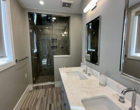 Gorgeous, Sun-Filled 3-Bedroom Condo Built in 2015, This beautifully designed floor-through unit offers direct elevator access from garage parking into an open-concept living space. Features include:-3 bedrooms, 2 full baths-Spacious living room with wall of windows and gas fireplace-Separate dining area fits a full-size table perfect for holidays-Chef's kitchen with stainless steel appliances, 6-burner gas range, pro-grade hood, large island, and ample counter space-Oversized primary suite with walk-in and custom closets- Luxurious primary bath with heated floors, double vanity, and steam shower- Central heating & A/C with two zones- - Private stone patio, 2 exclusive parking spots + guest parkingPrime location near the D-line, Brookline High, Lincoln School, parks, Brookline Village, and Longwood Medical.