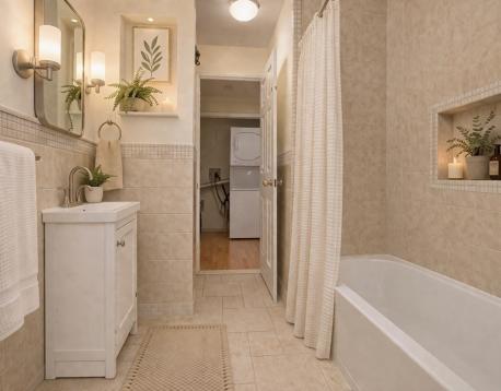 Fantastic penthouse condo for rent offering 808 square feet of well-designed living space with a great one-bedroom, one-bath layout and abundant natural light. A spacious bedroom, updated kitchen with granite countertops and new appliances, generous private extra storage, in-unit laundry, central a/c, ceiling fans and TWO PARKING SPACES provide comfort and exceptional convenience. This professionally managed community offers outstanding amenities including a fitness center, a cozy library, a board room, bike storage, on-site superintendent and beautifully landscaped park-like grounds. Ideally located near the Longwood Medical Area, the walking and running trails of Olmstead Park, and the charming shops and restaurants of Brookline Village, with easy access to the Green Line (T). This condo offers the perfect balance of tranquility and urban accessibility. Photos virtually staged.
