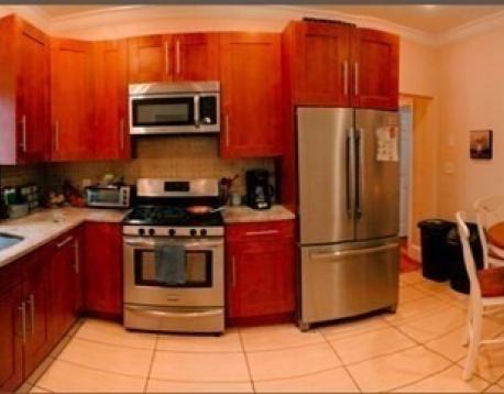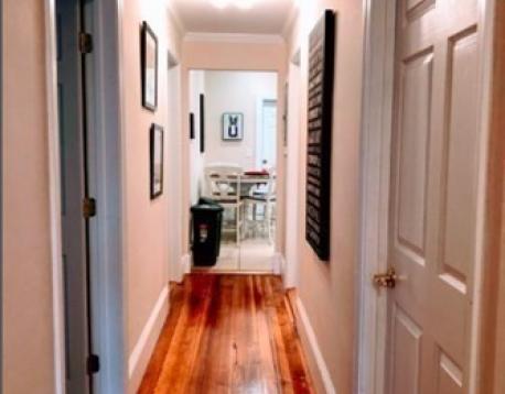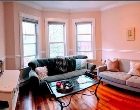 This second floor apartment has four bedrooms and two full bathrooms. There is a spacious living room and hardwood floors throughout. Both bathrooms have updated features. The kitchen has granite countertops and stainless steel appliances. There is also a porch at the back of the unit, giving you a nice option for outdoor space. There is laundry in unit. One off-street parking spot is included.