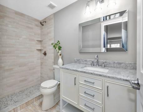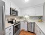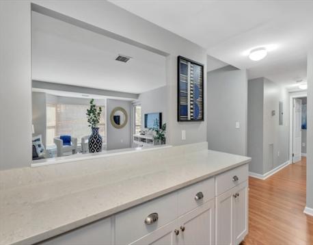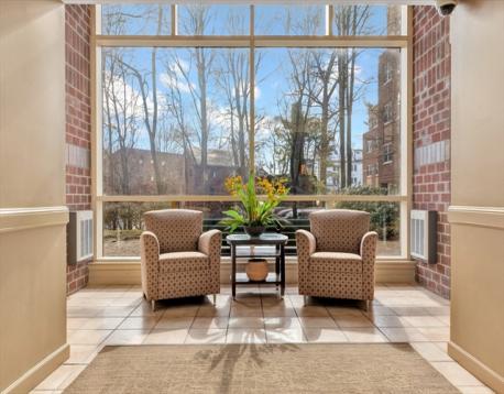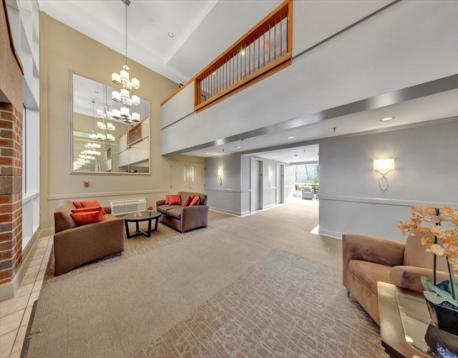 Sun-filled two-bedroom unit at The Watermill with balcony! This beautifully updated unit can suit many lifestyles, just starting out, or downsizing, this unit has all the space and amenities you have been looking for. The white cabinet kitchen has been updated with plenty of counter space to meal prep, brand new primary bath with walk-in shower, newly rebuilt primary with walk-in closet ready for your customization, second full bath for guests or common use, newer hardwood floors throughout, freshly painted interior, updated light fixtures and more. Featuring the hard to find combination of in-unit laundry, two-car covered parking, additional storage locker & exercise room for common use. The impeccably maintained building, and grounds, will make you proud to greet your guest in the main lobby or grab a book from the buildings little free library located in the mail room. Don't miss out on the opportunity to make One Watermill Place your new home.