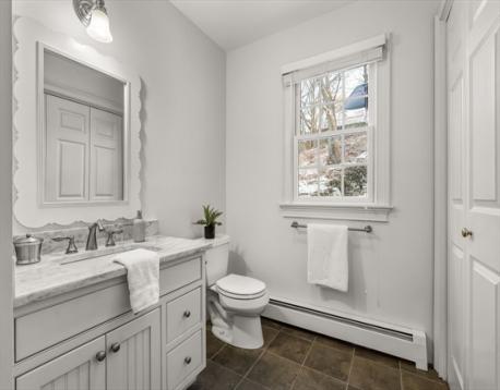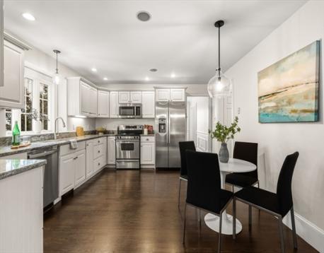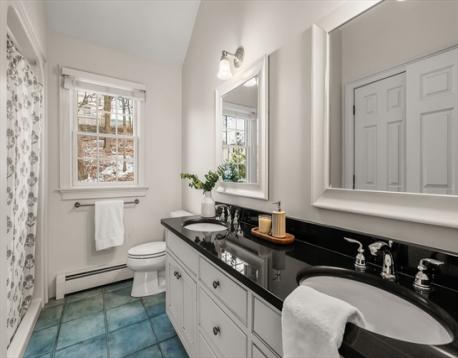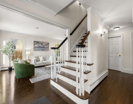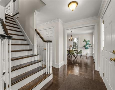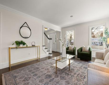Tucked away in Arlington Heights, this sun-filled colonial built in 2000 offers everyday convenience in a neighborhood close to Trader Joe’s, Mass Ave, the Minuteman Bike Path, Route 2, and multiple parks and playgrounds. Thoughtfully laid out for modern living, the first floor features an open foyer with large closet, front-to-back living room with French doors that lead to a flexible playroom or bonus room, a dining room with wainscoting and crown molding, and an eat-in kitchen with stainless steel appliances. A vaulted great room with a fireplace opens to the deck and backyard, creating an easy flow for daily life and entertaining. A half bath with laundry completes the main level. Upstairs, the primary suite includes a walk-in closet and private bath, along with three additional bedrooms and a full bath with double vanity. The lower level offers a partially finished room, generous storage, and a half bath, adding even more usable space in a location that truly works.