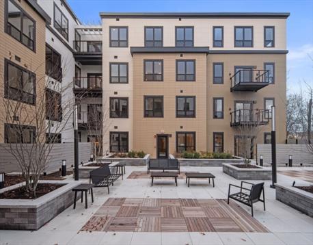 OPEN HOUSE Th/Fri/Sat 11-2pm. Welcome to Majestic Mill Brook, a luxury new construction condo complex built by The Maggiore Companies. Low-emissions development with high-quality finishes and contemporary flair. This stylish 1 bed, 2 full bath residence offers open-concept living and dining area seamlessly connected to a modern kitchen, complete with electric range, exterior-vented exhaust hood and microwave drawer. Private patio attached to beautifully landscaped 2nd floor community courtyard, featuring grilling stations, comfortable seating and lush plantings. Additional community amenities include a 5th floor roof deck, ground level Urban Garden and community fitness center. Enjoy everything Arlington has to offer from the Minuteman Bikeway only 0.2 miles from Majestic, to endless dining, shopping and recreational activities. 1 deeded garage parking space, bicycle storage & storage unit. Pet friendly. Private EV chargers for all units.