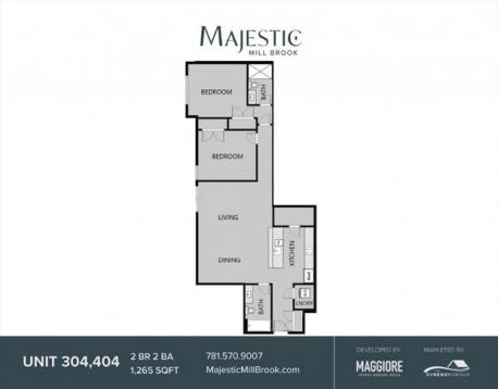 Welcome to Majestic Mill Brook, a luxury condo complex UNDER CONSTRUCTION for Fall 2025 occupancy. Low-emissions development with high-quality finishes and contemporary flair. This stylish 2 bed, 2 bath residence offers an open-concept living and dining area seamlessly connected to a modern kitchen, complete with an electric range, exterior-vented exhaust hood, and built-in microwave. A Juliette balcony overlooks the beautifully landscaped 2nd floor community courtyard, featuring grilling stations, comfortable seating and lush plantings. Additional community amenities include a 5th floor roof deck, a ground level Urban Garden and a community fitness center. Enjoy everything Arlington has to offer from the Minuteman Bikeway only 0.2 miles from Majestic, to endless dining, shopping and recreational activities. 1 deeded garage parking space, bicycle storage and a storage unit. Pet friendly community. Private EV chargers for all units. Sales office hours Weds 4-6pm Thurs-Fri 11-2pm.