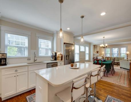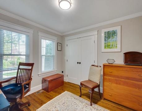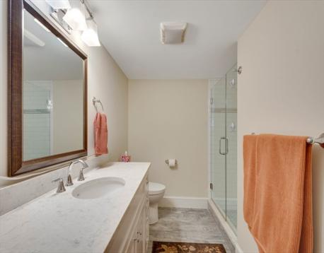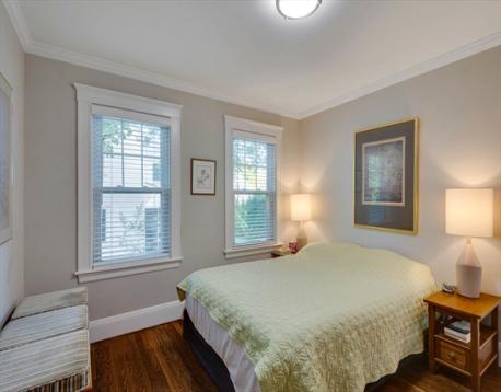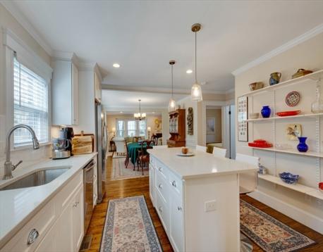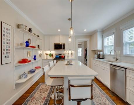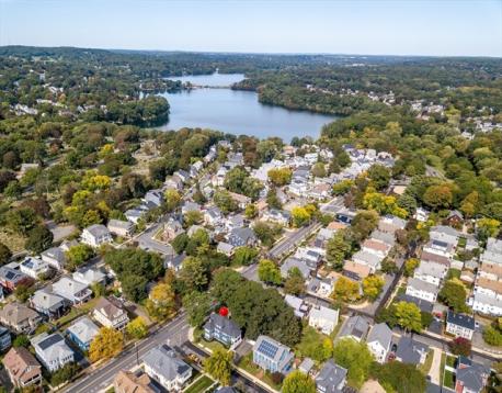 This beautiful home blends timeless charm with thoughtful modern upgrades across two spacious levels. The inviting main floor features an open layout with hardwood floors, custom millwork, first floor office, and an ornamental fireplace next to an inviting bay window seat. A chef’s kitchen with stone countertops, stainless appliances, and a central island flows easily into the dining room, creating an ideal space for gatherings. The main level also includes two bedrooms with ample closet space and a full bath. The finished lower level offers a versatile family room, additional bedroom, and full bath, along with laundry and office options. Enjoy a private porch, landscaped common yard, and the convenience of both garage and driveway parking. With central heat and central air, in-unit laundry, and easy access to green spaces, transit, and vibrant town center, Mystic River and Mystic Lakes. This home offers a rare opportunity for style and comfort in a sought-after location.