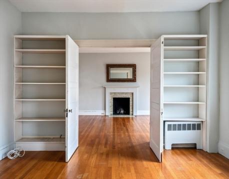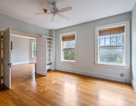Since 1906, when Bostonians would come out to summer near Spy Pond,the Grand Entry and Staircase, Bookfold wainscoting, Vintage Birdcage Elevator of "The Irvington" has welcomed Arlington residents! It's your turn now! This 2 bedroom-one w/some exposed bricks, 1 bath condo shows with appx 9 ft. ceilings, oversized bay windows, hardwoods through out, decorative fireplace, built in bookcases, full sized living room and dining room w/ Butler's pantry! The kitchen boasts custom painted cabinets w/ eat in room for a small table. The bath has a vintage style tile floor. A shared covered porch for outdoor entertaining awaits. Deeded parking, basement: laundry facilities and private storage, classic brass mailboxes and a short distance to "The Center" of town complete! Restaurants, coffee shops, shopping, public transportation to the "T" at Alewife and Harvard Square, Menotomy Rocks Park, The Jason Russell House,8-sided Fire Station, The Library, Minuteman Bikeway and access to Rt. 2. Wow!