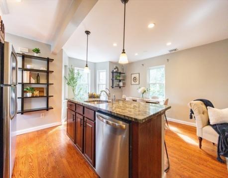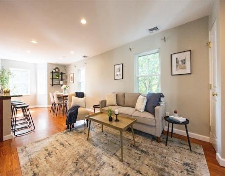 Beautifully renovated, sun-filled, bi-level 3-bedroom, 2-bath upper floor condo has been freshly painted. The flexible open floor plan suits a modern living style in a prime location. The kitchen has been refinished with stainless steel appliances & granite counters, flowing into a bright living & dinning room with access to a private front deck. Perfect to enjoy your morning coffee or a glass of wine at sunset.The third-floor primary suite features a full private bath and in-unit laundry. new heating system and hot water tank in 2024, flat backyard, and deeded parking. Pet-friendly! Nestled on a quiet, tree-lined dead-end street, just a 7-minute walk to Alewife Station or steps to Mass Ave buses, and close to the Minuteman Bike Path, Thorndike Field & Dog Park