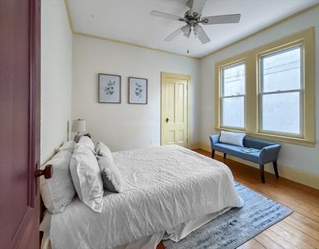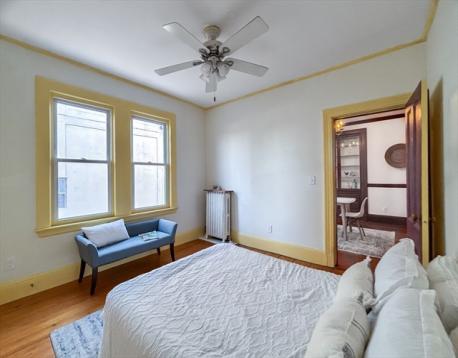 Bright and spacious, 3-bed, 1-bath Victorian condo in "The Alice Condominium" in the heart of Arlington Center, just steps to public transport, shopping, restaurants and more! Period charm galore, including soaring ceilings, elegant crown molding, built-in china cabinet, and pine flooring, is beautifully offset by many modern updates. Enjoy cooking in the remodeled kitchen with stone counters, gas stove, walk-in pantry, and a direct connection to the luxurious, private, covered porch, perfect for morning coffee and evening cocktails! Flexible layout includes an oversized living room, dining room w decorative fireplace, three good sized bedrooms with ample closet space, and many different options for a home office nook. With in-unit laundry, private basement storage, private outdoor space, all in a well maintained building, you can just move in & enjoy! Public transportation just steps away, along with easy commuter links to Boston and beyond!