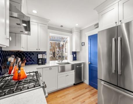 Feeling like a single family home, this meticulous 1st floor condo is perfect for the downsizer, first time home buyer or anyone who wants to walk to everything. Charming very large yet cozy living room with fireplace, stately oversized dining room with majestic windows. The totally renovated chefs kitchen speaks for itself, cabinets galore with stainless, quartz, cozy breakfast nook & garden window perfect for growing your favorite herbs. 2 bedrooms & a gorgeous renovated bathroom round out this one level unit. All the major items have been replaced in the last few years, roof, windows, new heating/central air in 2022 (but kept the working boiler & radiators as backup) Half the large basement, 1 garage & 1 parking space & the shared garden areas with auto-sprinklers are also included. All Arlington Center has to offer, trendy restaurants, Theatre, bus to Harvard Sq, Alewife T for Boston or airport & all major routes! **Open Houses: Fri & Sat 12-1:30, Sun 1-2:30 Feb 27/28, Mar 1st.
