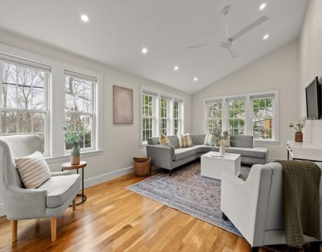 Some homes are easy to describe, but this is one you need to see in person to truly appreciate. Set on a double lot in Arlington Heights, it feels more like a private outdoor retreat than a typical yard, with a deck, patio, greenhouse, gazebo, and even a treehouse, all framed by sweeping views of Boston. Close to Brackett School and Robbins Farm Park, the location balances access and escape. Inside, the layout adapts to all phases of life. A newly renovated kitchen and dining area open to the deck, while a large family room and separate living room give you options to gather or unwind. The newer addition includes a flexible in-law suite or bonus room with vaulted ceilings, skylights, full bath, and kitchenette. Upstairs offers three bedrooms, a bathroom and laundry, while the top floor is a true primary suite oasis with walk-in closet, steam shower, and soaking tub. With plenty of storage space and a garage, the only thing left to do is move in.