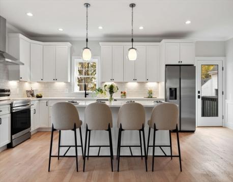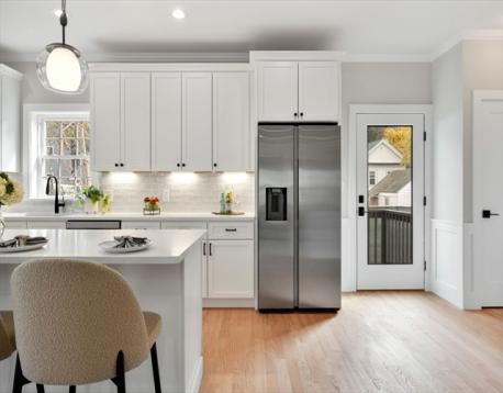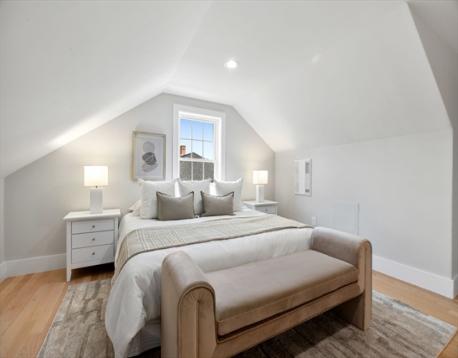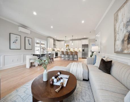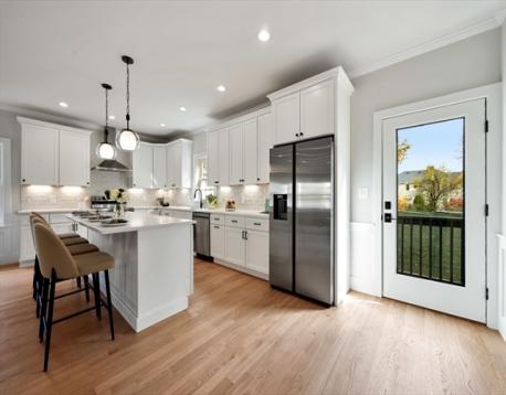 This brand-new, custom-built, energy-efficient townhouse is bathed in natural light and showcases the perfect blend of modern design and everyday comfort. Upon entering, you’re welcomed into a spacious open-concept kitchen-living-dining area featuring an expansive island, white cabinetry, stainless steel appliances, recessed lighting, and hardwood floors — ideal for both entertaining and relaxed living.The second floor hosts three generously sized bedrooms, including one with an ensuite bath with a tiled shower, plus a well-appointed main bathroom and a convenient laundry area with built-in cabinetry. The third-floor primary suite offers a private retreat with two large closets, a cozy sitting area, and a luxurious ensuite bath. An unfinished basement provides great potential for future expansion, while the attached one-car garage adds everyday convenience. Perfectly situated near the Minuteman Bikeway, Arlington Center, and a variety of shops and restaurants. This home has it all!