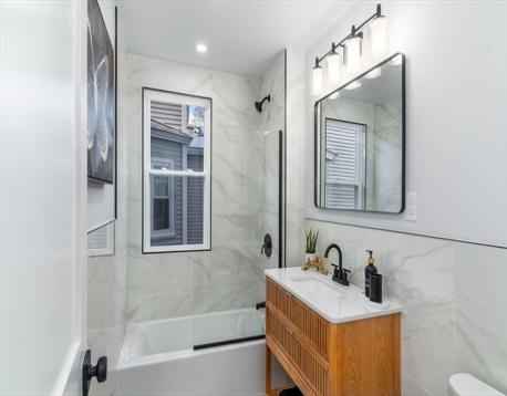 Fully Renovated Top-floor, sun-filled 3-bedroom, 2-bath condo in an A+ Arlington location. Nestled on a quiet, tree-lined street in the heart of Magnolia Park & Thorndike Field, just steps to the Minuteman Bike Path and a 15-minute walk to Alewife Station, with easy access to Mass Ave buses.Features include a bright living room with bay windows, sunny dining area, and a modern kitchen with quartz countertops, wood cabinetry, and stainless steel appliances. Three bedrooms and two full baths on one level offer flexible living space. Enjoy two private covered porches (front and back), in-unit laundry, large private basement storage, deeded parking, and pet-friendly living. Convenient to parks, dog park, and top-rated Hardy School.Conveniently located on the Arlington-Cambridge border. Near Mass Ave, Alewife Redline T, The Capitol Square, Minuteman Bike path, Spy Pond. Easy access to Alewife, RT 2, the 77 bus line to Harvard Sq., Wholefoods, and Trader Joe's.