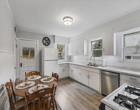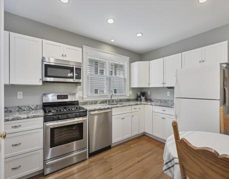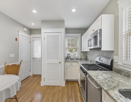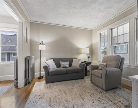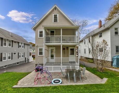 Welcome home to this well-loved and meticulously cared-for 5/8 two-family home, cherished by the same family for over 60 years! This property showcases hardwood floors and an abundance of natural light throughout. The first-floor unit features a beautifully renovated kitchen with white cabinetry, granite countertops, stainless steel appliances. Traditional dining room opens to a spacious living room, complemented by two bedrooms and a fully renovated bath. Second-floor unit offers an updated kitchen, dining room, living room two bedrooms, and den or office, a three-season porch and a full bath. The third floor provides two additional bedrooms with significant potential for expansion. Both units with rear porches overlook a private, beautifully landscaped yard with a stone patio-perfect for entertaining. Outstanding location just moments from the Minuteman Bike Trail, parks, playgrounds, and public transportation. Updates include gas heating systems, roof, windows and hot water tanks.