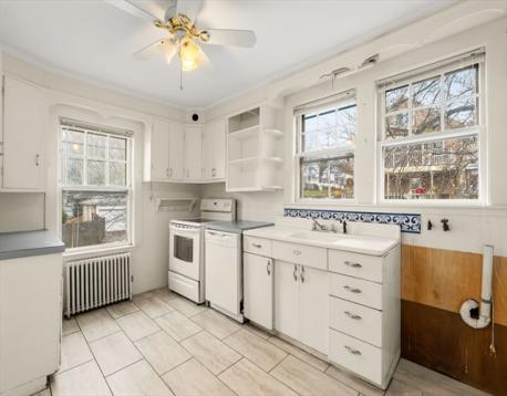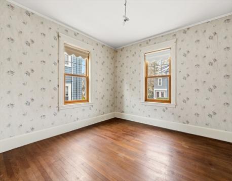 Contractors, builders and investors, this is your opportunity to unlock the full potential of this two-family home situated on a corner lot. Conveniently located in Arlington Heights with easy access to Mass Ave, Menotomy Rocks Park, Brackett Elementary and Robbins Farm Park, this property offers an exceptional canvas for transformation. Each unit features three bedrooms, one bathroom, hardwood floors, oversized rooms and high ceilings. The first-floor unit offers a sun-filled front den or office, a spacious living room with a fireplace, a formal dining room with original built-ins and a large kitchen ready for reimagining. The upper unit has a very similar layout but also includes a front porch plus a full, unfinished third floor ideal for expansion. Whether you envision a custom owner-occupied home, rental income property or high-end renovation project, 39 Newport St delivers unmatched potential in a fantastic location.