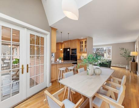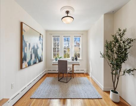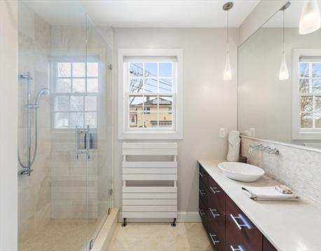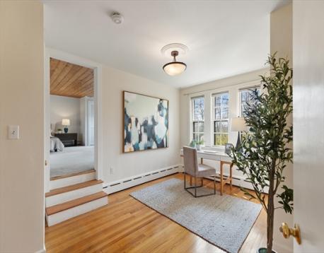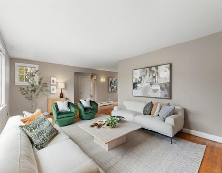 Set on over a third acre, this 3,000+ sq ft ranch in Jason Heights is a rare offering. One block from Menotomy Rocks Park, this 3-4 bedroom, 2.5 bath home offers plenty of space and the convenience of one-level living. This sunny home has an open floor plan and inviting details: living room with fireplace and picture window, dining room with skylights, and well-designed kitchen with plenty of storage and counter space. The east wing has a 400 sq ft room that could be a primary or guest bedroom, family room, or home office, complete with half bath and sitting room. The west wing has 3 bedrooms and a full bath with walk-in stone shower and counter, and heated towel warmer. The finished basement features a fireplaced family room plus large bath with custom cabinetry, towel warmer, and soaking tub; separate laundry room, even a sauna! Outdoor living is ideal: fenced in yard has an inground pool, patio, 3 season porch, and deck. Features include 2-car garage, solar panels, and central air.