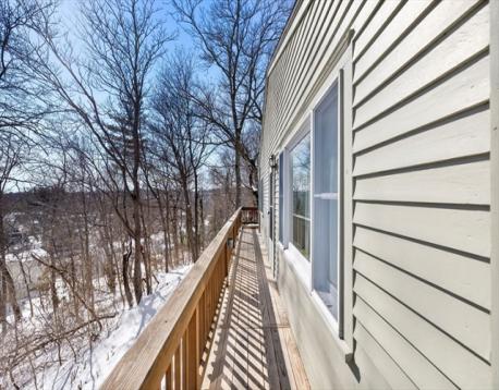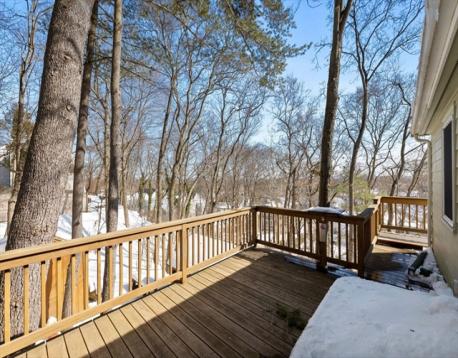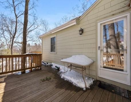 This charming ranch home is perfect for first-time buyers or those seeking easy one-level living. Nestled on a spacious wooded lot, this 3-bedroom, 1-bath offers 1,309 sq ft of living space with recent updates including a modern kitchen, mudroom/entryway & bathroom. The living room opens directly to the deck overlooking the peaceful, tree-lined backyard ideal for relaxing or entertaining. It features a generous primary bedroom with double closets, two additional bedrooms, a full bath, forced hot air heating, and new central a/c. Renovations include an updated bathroom w/ glass shower & tile accents, bright white kitchen with granite counters, ample storage and stainless appliances, open eat-in dining area, practical laundry/mudroom with storage. An expansive wrap around deck surrounded by mature pines for a private wooded retreat. This home delivers updated interiors, single-level convenience & tranquil surroundings.