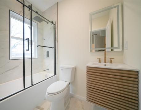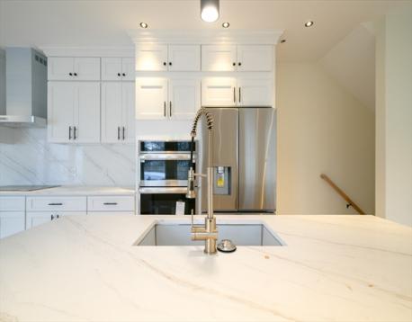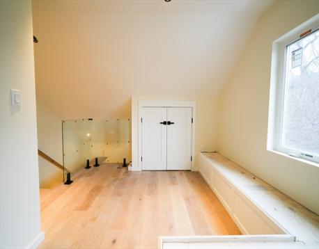 Introducing 455 Summer in Arlington Heights, an attached townhome spanning 4 floors. The main floor is a large open space with a beautiful kitchen. Step into the bright open living room w/ a cozy fireplace, continue to the kitchen w/ a double-oven& island, then under an elegant arch ceiling, continue to the full bathroom & bedroom w/ access to a private rear deck. The 2nd floor features 2 large bedrooms on opposite ends allowing privacy, one w/ an en-suite bathroom & WIC; the other with a WIC. This floor also has a full bathroom, features wide hallways & a wide laundry closet with additional storage room. Enjoy the large nook by the window. The primary bedroom features a unique elegantly designed vestibule entrance. The 3rd floor has a built-in bed & half bathroom and additional storage. The finished LL has plenty of space for multiple uses, w/ a wet bar, full bath, extra storage & walkout to a shared yard. 1 garage parking + 3 tandem driveway spaces. Near Mass Ave. Ready for 2026!