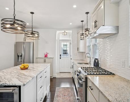 Discover the perfect blend of sophisticated design and suburban ease in this stunning, 1,958-square-foot residence. Ideally situated in the heart of East Arlington, this ground-floor unit underwent a meticulous 2022 renovation, offering three bedrooms and 2.5 bathrooms across two expansive levels. The main level features a transitional modern design, anchored by a gourmet kitchen and an open-concept living and dining area. A versatile sunroom/office provides the perfect space for remote work. Retreat to the primary suite, which boasts a custom-designed bathroom and a walk-in closet with thoughtful built-ins. The lower level provides incredible separation of space, offering a spacious family room, a dedicated laundry room, two additional large bedrooms, and a full bath. Step outside to your exclusive outdoor patio and enjoy the rare convenience of a detached garage plus one additional off-street parking space.