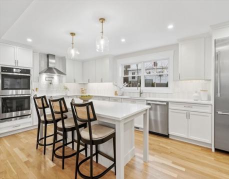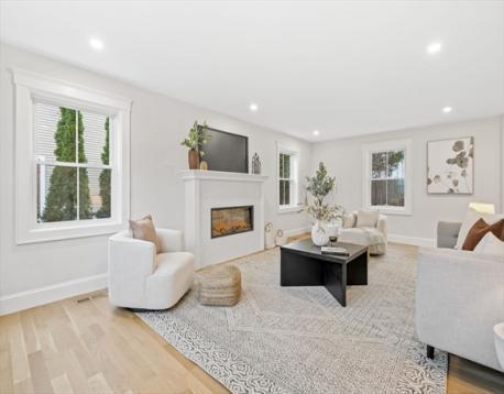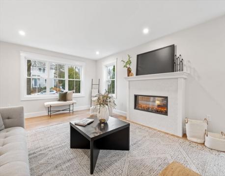 Spacious Colonial in Arlington Heights offering 5 bedrooms, 5 baths, exceptional craftsmanship, and bright open-concept living with white oak flooring throughout. The stunning kitchen with a large island anchors the expansive first floor, which includes a front-to-back family room with a fireplace and flexible areas for dining, lounging, and entertaining. With four finished levels, three living rooms, and multiple office spaces ideal for work-from-home needs, this home offers extraordinary versatility. Energy-efficient systems, spray-foam insulation, and a dedicated second-floor laundry enhance comfort and convenience. The primary suite features cathedral ceilings, a luxurious bath, and generous closets. Outside, a beautifully landscaped yard, stone walls, elegant hardscaping, and a large patio create the perfect setting for outdoor enjoyment. Ideally located near top schools, the bike path, the Reservoir, The Heights, shops and restaurants, with easy access to Route 2, I-95, & Alewife
