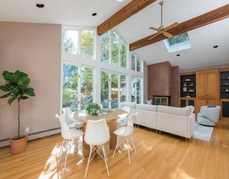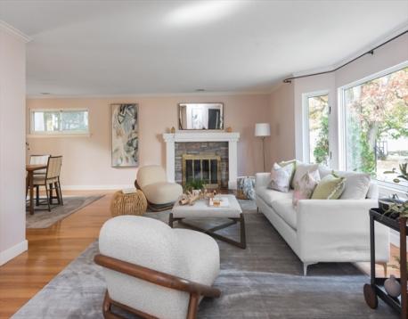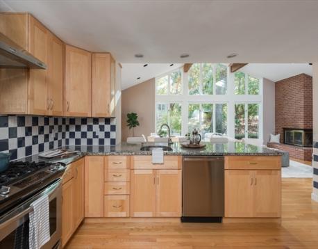 Located on a peaceful street in the welcoming Morningside neighborhood, where kids still play in the streets, this 3-bed home has been thoughtfully expanded and updated. From the front door you'll be drawn immediately to the light filled great room with soaring ceilings, long leafy views, and access to the deck that provide seamless indoor/outdoor living. The chef's kitchen features birch cabinets, granite counters and stainless appliances. With three wood burning fireplaces, there are plenty of options for a cozy movie night. Privately situated down the hall is the primary with ensuite bath, two additional bedrooms, and family bath. The finished basement offers a 2nd family room, space for exercise, plenty of storage, and potential for your future mudroom right inside the garage! Park in the oversized garage with space for two cars + storage, and stay warm and dry with direct access into the basement. Welcome home!