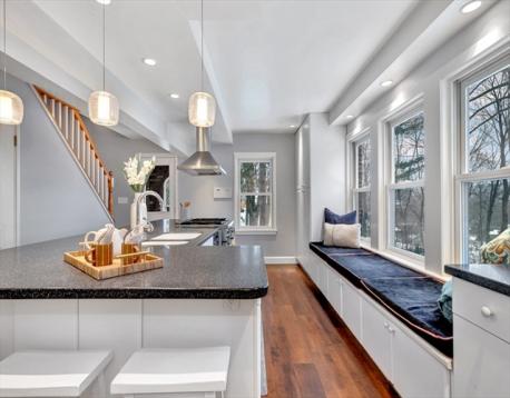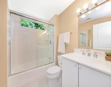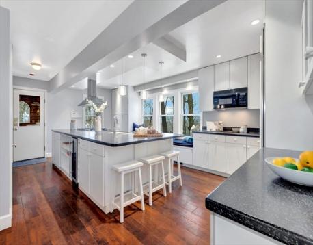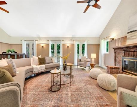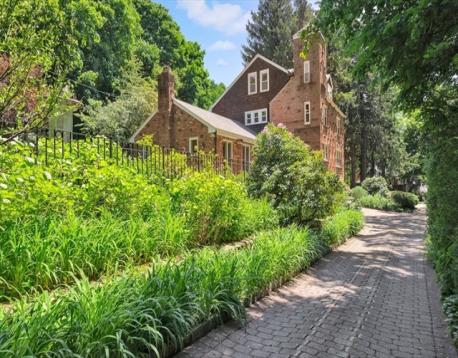 Tucked beneath a beautiful canopy of trees, you’ll find one of Arlington’s truest treasures, an enchanted, incredibly special villa framed by stone pillars, whimsical statues, & a winding cobblestone path. Echoing the spirit of 'The Secret Garden', this storybook retreat feels like a hidden castle wrapped in lush greenery, bluestone patios, & waves of perennials blooming all season long. Inside, floor-to-ceiling glass doors, soaring ceilings, a cozy wood-burning fireplace, & terrazzo floors set the tone to kick back & relax in the Great Room. Updated in the ’90s, the kitchen is fully equipped while a 1/2 bath & den/office/optional bedroom round out the main level. Upstairs are 6 spacious bedrooms, including a primary suite w/walk-in closet & bath, each w/thoughtfully placed windows or glass doors & a wrap around deck. At the top, a lookout tower invites little imaginations to run wild! This rare setting, one of the largest green spaces in town, offers ADU & future development pot'l!