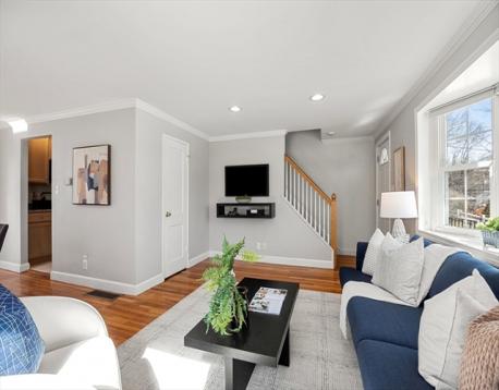 Experience the perfect combination of light, space, and convenience at Village Heights. This private end-unit townhouse, perched on a hill, offers the feel of a single-family home with the simplicity of condo living. Two dedicated parking spots are right at your back door, and a private patio with French door access provides an inviting space to relax or entertain. Inside, the sun-drenched open floor plan flows seamlessly from the living and dining areas to the kitchen, which features granite countertops and stainless steel appliances. Upstairs, you’ll find two generously sized bedrooms and an updated bathroom. Additional perks include hardwood floors, in-basement washer and dryer and extra storage. Enjoy easy access to the Minuteman Bike Path, Mass Ave bus service to Alewife and Harvard Square, and less than a mile to the shops and dining of the vibrant Arlington Heights.