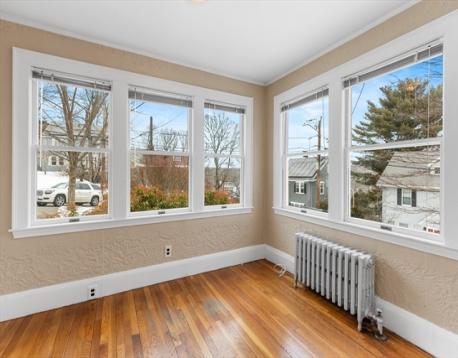 SUNNY AND CHEERY VILLAGE COLONIAL just steps from Shops, Fine Dining, Minuteman Bikepath, Robbins Farm Park with Views of The City Skyline, and Schools! The fresh interior offers high ceilings with replacement windows in most rooms, Living Room with Fireplace, connected office / sun room and large dining room. Upstairs you'll find an updated bathroom, 2-3 Generous Sized Bedrooms and lovely enclosed porch / sun room; perfect for afternoon naps or a second office / art studio. The lower level offers laundry, ample storage and direct access to the 1 car attached garage. Location, Condition and Curb Appeal make this home a find! OH's Friday 3-5 pm, Saturday 11-1 pm and Sunday 12-2 pm.