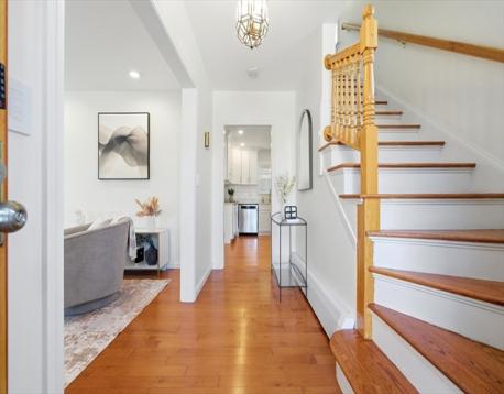 This sun-filled brick Colonial single-family home in East Arlington offers a thoughtfully designed floor plan with bright windows. Newer oak hardwood floors installed in 2021. Same year updated kitchen features quartz countertops and a modern layout ideal for everyday living and entertaining. The living room includes a cozy fireplace, and the first floor offers a well-appointed half bath. Upstairs, the primary bedroom is joined by two additional bedrooms and a recently updated full bathroom. A finished basement provides flexible space for a playroom, study, or exercise. Conveniently located near the Minuteman Bikeway, shopping, and Spy Pond Park, with easy access to Cambridge and Boston. Exterior features include a private porch, paved driveway, garage, and yard.