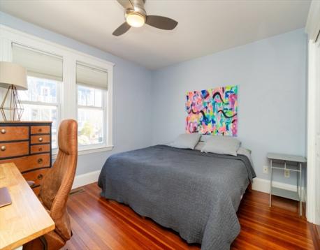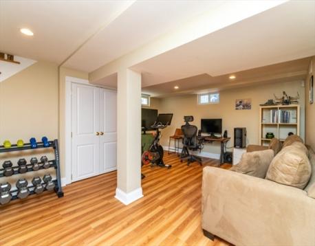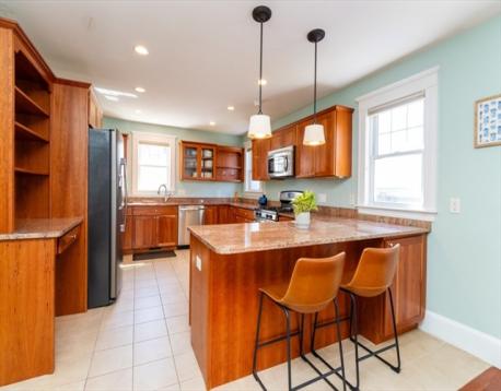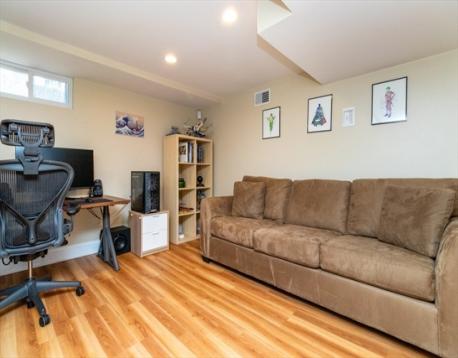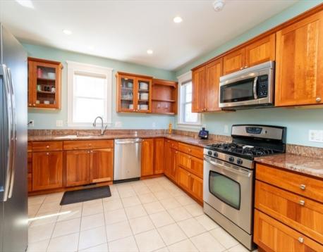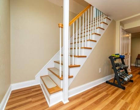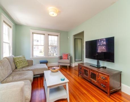 Desireable E. Arlington location offers a beautifuly maintained home- 2 bd 2 ba- duplex . Wecloming entry coat closet leads to spacious sunfilled living rm, entertainng dining rm w/ built in window storage and custom pillow top. Inviting modern kitchen offering S.S. appliances, granite top counters ample cabinetry natural light work, station desk area w/shelving. This spacious kitchen is equipped with a large bkfst bar island- cabinetry on both ends recessed lights. New lighting on main floor additionally offers full tub bath and two spacious bdrms. C/A, gas heat, gleaming HWF's, blinds are some features. Lower Level -shower bath, double door closets- space for for multi media den, excersize rm, office or guest bedroom. Additionally a laundry room stackable w/d.Common yard for cookouts and porch. Tandem 2 car parking. Easy access to Mass ave, town center, transportation, schools, highways. Comfort, style & location awaits you at a sought after locaton .