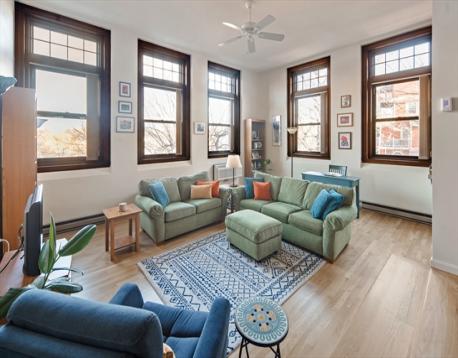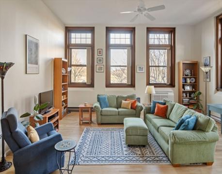 Exceptional 1 bedroom residence at the coveted Locke School Condominiums in Arlington Heights. Historic charm meets modern living in this distinctive community, showcasing Renaissance Revival style schoolhouse architecture with exposed brick and dramatic ceiling heights. This desirable corner unit welcomes you with a spacious foyer offering abundant storage. The open concept living area features sprawling 11’+ ceilings, a generous living room with space for a home office and oversized transom topped windows that flood the home with natural light. The dining area with 10‘+ ceilings flows seamlessly into the kitchen, complete with electric range, butcher block countertops and a prep sink. The cozy bedroom offers exposed brick and double closets. Amenities include “in unit” laundry, lower level storage, and a deeded parking space. Ideally located and just one block from Mass Ave, with easy access to restaurants, grocery stores, bus routes, and neighborhood amenities. OH Sat & Sun 12-1:30
