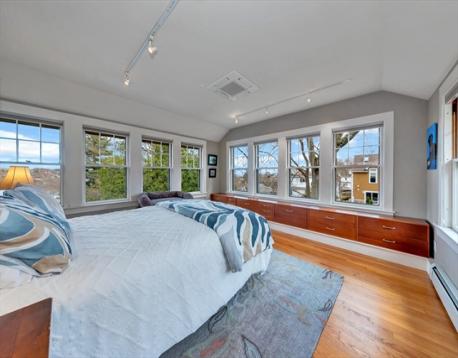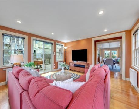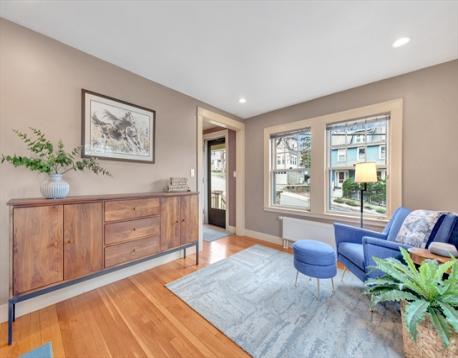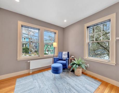 Full of soul, this beautifully reimagined Craftsman home embodies the character of the 1930s while offering the ease of modern-day living! Thoughtfully redesigned by its former architect/owner, the layout is both versatile & intentional, where every space lives large. The design-driven kitchen pairs modern cabinetry w/concrete countertops, creating a fresh industrial yet artisan vibe. A sunlit rear “great room” addition, wrapped in windows, brings the outdoors in and opens to a side deck overlooking a fenced yard rich with well-established perennial gardens. Upstairs, you’ll find a fully renovated, stylish bath and three bedrooms, including a primary suite with skylit shower & custom-built closets. At the top, the “tree house retreat,” lined with built-ins, feels worlds away - a fourth bedroom, artist loft, writer’s sanctuary, or home office, you decide! Perfectly scaled & ideally located, just moments to the 77 bus to Cambridge/Boston & only blocks from Skyline Park & Brackett School!
