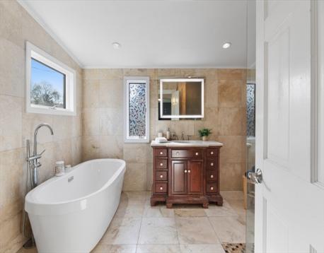 What draws you to a home, makes it right for you and your family? Is it the family room, spacious enough for game or movie night? Is the kitchen the heart of your home, where everyone cooks, eats, and hangs out together? Or are you partial to unwinding in a serene bedroom suite? This completely renovated home offers all this and more, a perfect blend of over 3,200 sq ft of exceptional space and style throughout. The family room addition is 650 sq ft and has 9’ ceilings and glass walls and doors, allowing for loads of natural light and a seamless transition to the fenced in yard. The oversized kitchen is a true showstopper, with high end appliances, custom cabinetry, and 27 feet of marble counters. Retreat to the luxe primary bedroom suite, a sanctuary designed with relaxation in mind. This spacious suite includes a spa-inspired bath with premium finishes, large walk-in closet, even a deck to enjoy your morning coffee. Come fall in love with this exceptional Jason Heights home.