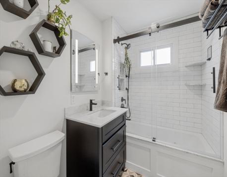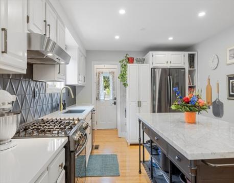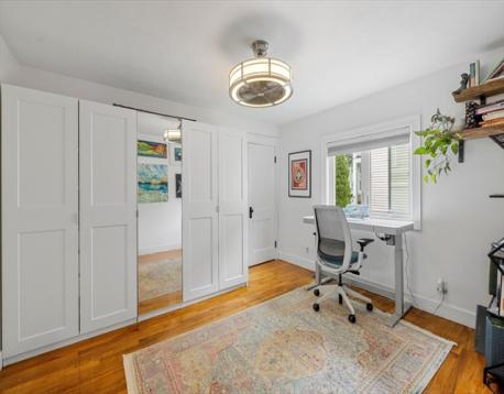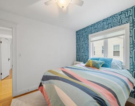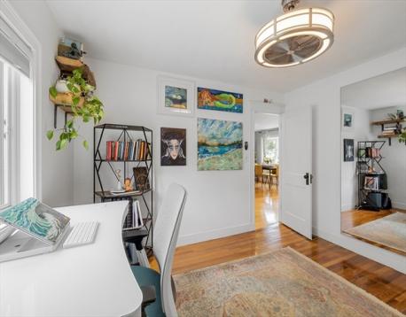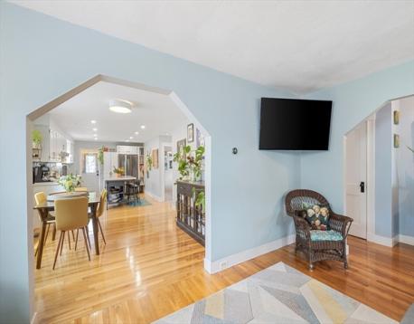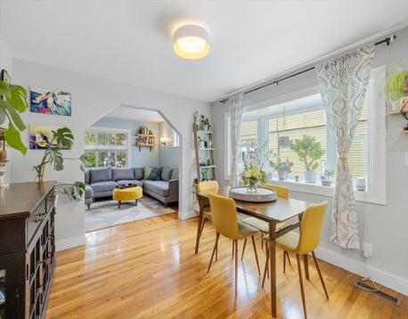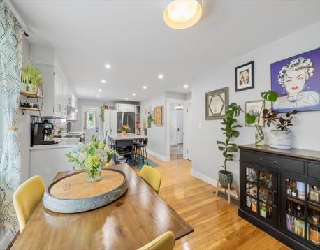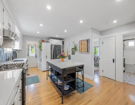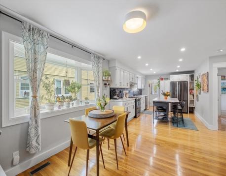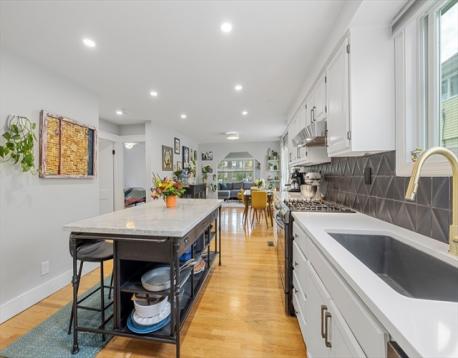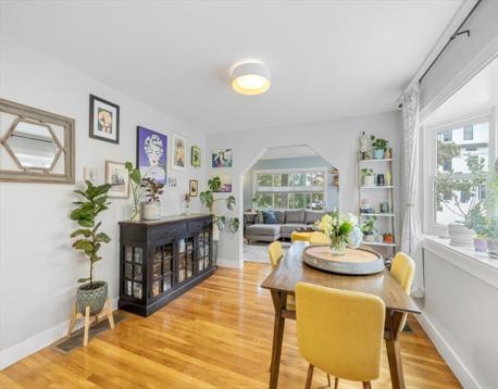 Not your average East Arlington condo! This exceptional two-bedroom has been zhushed top to bottom so you can move right in and enjoy. Step through the welcoming entryway with a coat closet and into a sun-filled living room framed by oversized windows and views of the front porch. The open dining and kitchen area is a showstopper — walls removed to create one ample space, complete with updated cabinets, counters, appliances, and a center island perfect for cooking, eating, and gathering.The bedrooms are situated on either side of a fully renovated bathroom with radiant floors, giving everyone a little privacy. Outside, a fresh patio and grassy yard make the perfect spot for morning coffee or summer hangs. New windows. Add in two parking spaces and you’re just a short walk to East Arlington’s shops, restaurants, theaters, and the Alewife bike path — plus a short jaunt or bus ride to Alewife and West Medford stops. This one truly has it all.