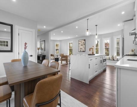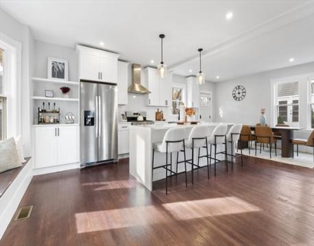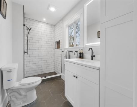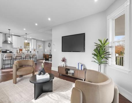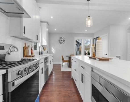 First Showing at the Open House Sunday Nov 16 from 10am to 12pm. Welcome to 10 King Terr a newly renovated 3 bedroom 2.5 bathroom home on an oversized lot with a detached 2 car garage on a quiet dead end street. First floor has an open floor plan with the living, dining, kitchen and a half bath. On the second floor, there are 3 bedrooms and 2 bathrooms, one of which is the primary with an en-suite bathroom. The lower level was finished to add additional living space with access to the backyard. The upper floor has a walk up attic for additional storage. Updates include new roof, new plumbing, updated electrical, new HVAC, updated windows, new kitchen and baths. Convenient commuter location near Rte 128, shopping, schools etc. Do not miss this opportunity to live in a desirable location!