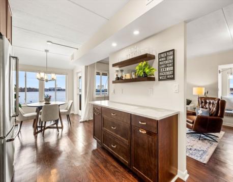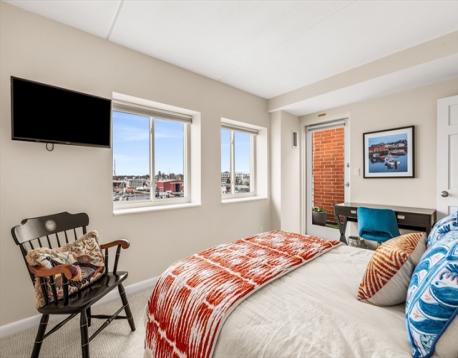 Wake up to sweeping harbor views in this sun-drenched, waterfront corner penthouse at Tuck Point Condominiums in Beverly. Offering two levels of thoughtfully designed living, this beautifully renovated 2-bedroom, 2.5-bath home blends comfort, style, & stunning scenery from every window. The main level features a spacious open-concept layout with a well-appointed kitchen, dining area, and inviting living room - perfect for entertaining. Enjoy the convenience of in-unit laundry, expansive storage, a new hot water heater, and direct access to a private deck overlooking the association pool and Beverly Harbor. Upstairs, the expansive primary suite offers an oversized walk-in closet & a private bath, while a generously sized guest bedroom, separate full bath, and dedicated office provide flexibility for today’s lifestyle. A second west-facing “sunset deck” captures picturesque views of the Beverly-Salem Bridge. Ideally located just moments from downtown Beverly’s vibrant dining & shopping.