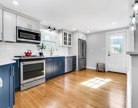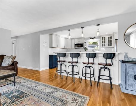 Outstanding presentation in this move in ready home in the Ryal Side area of Beverly. Unpack and enjoy this thoughtfully designed home with peaks of the river from the inviting deck. Perfectly remodeled kitchen anchors the home and features warm quartz countertops with 4 seat island peninsula w/pendant lighting, top end stainless appliance package, plentiful new designer cabinetry, hardwood floors and is open concept to living room and dining area. Large picture windows allow natural light to flood the home. Indoor and outdoor entertaining is easy and flows naturally between kitchen and generous outdoor deck. 3 charming bedrooms with hardwood flooring are decorated with modern and inviting color schemes . 3/4 bath off of Family Room is brand new and main bath is completely remodeled. One car garage enters directly into mudroom. This welcoming home is beautifully presented and awaiting it's new steward. Must see property will not disappoint and will not last. Come home to Beverly!