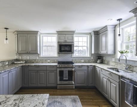 This gorgeous antique house was completely renovated in 2019. Wonderful hardscaping connects the inside with outside, enjoy the gas fire pit, and beautifully landscaped back yard. The barn was fully rebuilt last year, has both water and electricity, and is a wonderful space for summer entertaining and overflow. Large eat-in chef's kitchen with dining area - a fireplace on each end compliment this room. Unbelievably well-insulated and soundproof home. The principal bedroom suite includes a large dressing room, spacious top-of-the line bathroom and a small, light filled home office. Both bedrooms on this floor are large with fireplaces and plenty of light pouring in. The third floor has many possible uses - au pair suite, guest rooms, home office, playroom and more. All of this in sought after Beverly Cove with beach, park, schools all within minutes. First open house on Thursday 5pm to 6.30pm and then Saturday and Sunday 10:30am to 12pm.