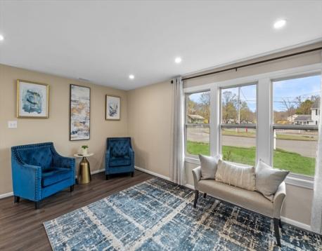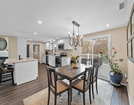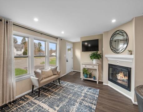 Welcome to this single level living home ideally situated on a quiet cul-de-sac. Enter living room, kitchen and dining room combination featuring a gas fireplace, creating a warm and inviting focal point. The kitchen is completely updated with granite countertops, center island, cabinets, and flooring throughout perfect for both everyday living & entertaining. Enjoy the direct access from the kitchen and den to a deck and patio. The primary bedroom has a half bath, and there are two additional bedrooms and a full bath. Additional living space includes a family room, dedicated laundry area, and a versatile den/or additional 4th bedroom, providing flexibility. Situated on a half-acre lot, the property features a serene, private yard with established gardens on one side and a newly fenced section on the other, which includes the deck & patio—perfect for entertaining or relaxing outdoors. Additional highlights include a storage shed and an expanded driveway. OH Thurs 4:30-6 Sat/Sun 12-2