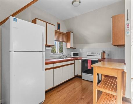 Beverly is ranked the #1 hottest zip code in the nation for 2025, according to Realtor.com. Now you can live in one of the best locations within the hottest city in America! Situated in Beverly's thriving downtown district between the Beverly library & the iconic Cabot Street Theater - you can walk to everything: restaurants, bars, stores, live music venues, beaches & the Commuter Rail to Boston. This sunlit 5 room 2-bedroom condo is also one of the best values in town, w/a low condo fee, 2 deeded off-street parking spaces & in-building laundry. The common back yard offers green space as well. The open concept main living area has carpeting, tall vaulted ceiling w/a skylight, dining area & sliders to the deck & a kitchenette. Two bedrooms (one w/a walk-in closet) and a full bathroom w/tub & shower round out the space. The unit needs a facelift but w/some TLC it will be an amazing place to call home!