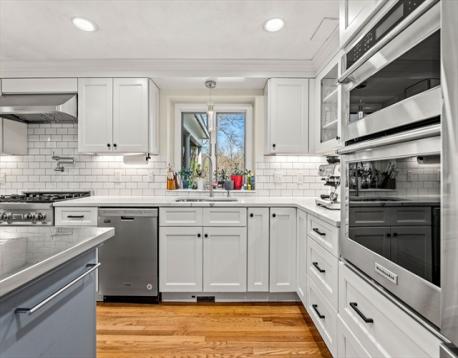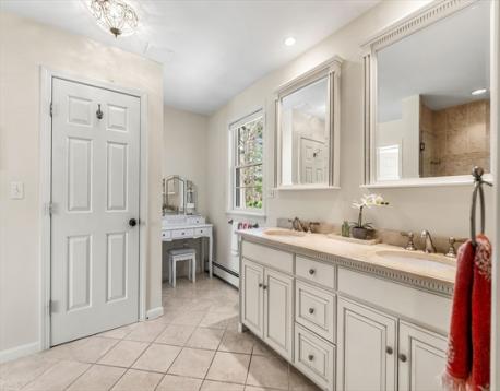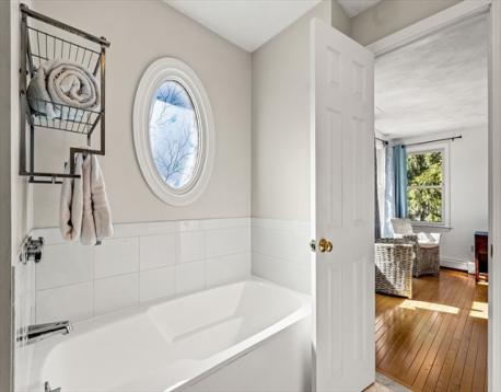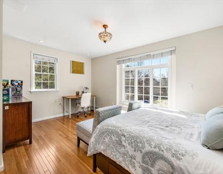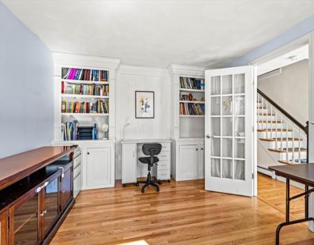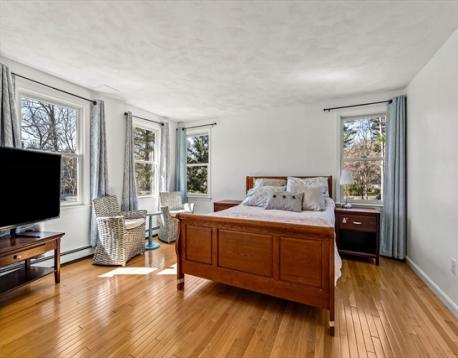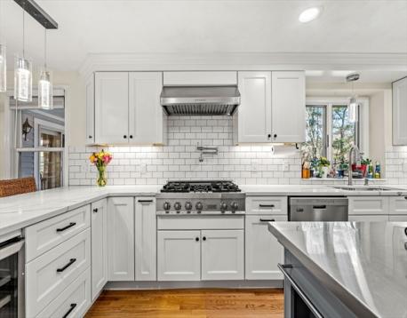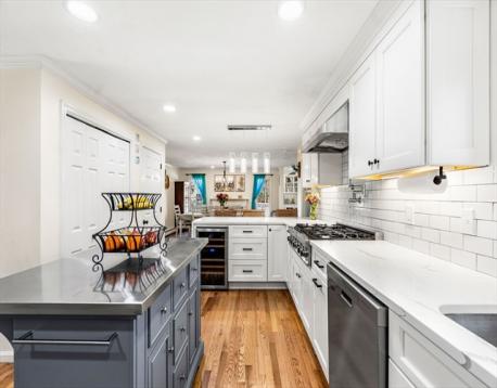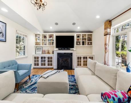 At the end of a cul-de-sac in Beverly’s Centerville neighborhood, this five-bedroom home occupies a premier spot on over half an acre. The interior offers hardwood floors throughout and a layout designed for a versatile lifestyle and time at home. At the center is a modern, renovated kitchen equipped with a pot filler, box window, wine refrigerator, pantry, and breakfast bar. The kitchen is open to the dining room, with a wood fireplace. Adjacent, the family room has vaulted ceilings, custom built-ins, a gas fireplace, and sliding doors leading to a covered deck. Recent updates include a newer roof and replaced windows. A private office off the foyer provides workspace, while the mudroom near the 2-car garage offers a utility sink and half-bath. Upstairs, the bedrooms feature two ensuite retreats, one with a walk-in closet. A finished lower level adds space for a media room and exercise area. Near local parks and town amenities, this property offers privacy in a convenient location.