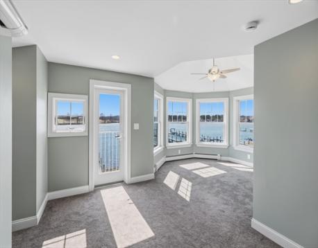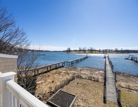 Exceptional waterfront home with deeded 209’ deep water dock, offering rare access and a true coastal lifestyle. Thoughtfully built with steel beam construction, engineered I-joists, advanced subflooring, and Low-E, argon-filled windows with hurricane-rated doors. Radiant heat spans the first floor, and all baths, paired with high-efficiency propane and mini-splits for year-round comfort. Open-concept main level features a well-appointed kitchen with island, double wall ovens, convection cooking, and seamless built-ins. Hickory flooring runs throughout the upper levels, including a spacious primary suite with steam shower and custom walk-in closet. Finished third floor with full bath offers flexible living space, with additional expansion potential above the garage. Enjoy dipped cedar siding, pvc trim, composite decks, Sunsetter awning paver patio, fire pit, and a private dock with water and 30-amp service. A rare blend of quality construction, space, and premier waterfront living.