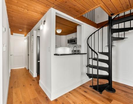 One of the largest and most desirable loft-style homes at The Gateway, this top-floor unit offers soaring ceilings, exposed brick, oversized windows, and an open layout that stands out in the building. The updated granite kitchen opens to spacious living and dining areas, complemented by two full bathrooms and two generous bedrooms with excellent closet space. A versatile loft provides the perfect bonus area for an office, media space, or guest room. New water heater. Exceptional parking for this complex with one garage space under and one additional deeded space. The professionally managed community includes elevators, a fitness center, outdoor pool, and a shared roof deck overlooking Beverly Harbor. Live in the heart of Beverly—named America’s “Hottest ZIP Code” for 2025—celebrated for its vibrant downtown restaurants, cafés, arts and cultural scene, coastal lifestyle with beaches, parks, and public docks, plus four commuter rail stations offering quick access to Boston.