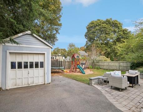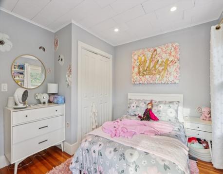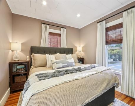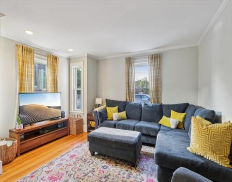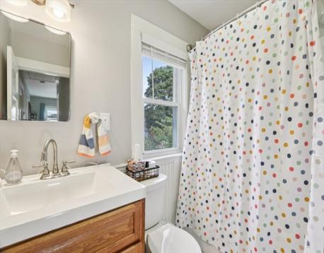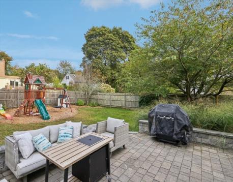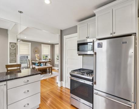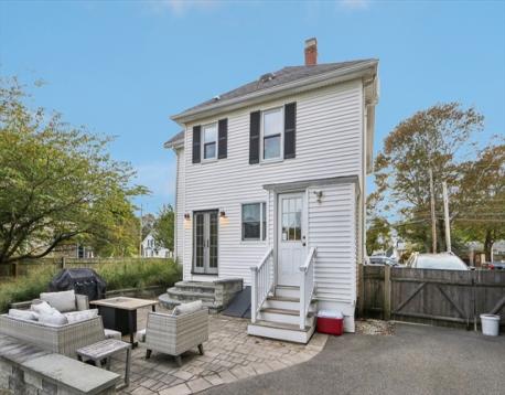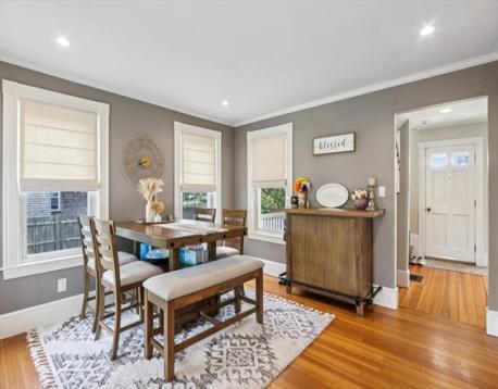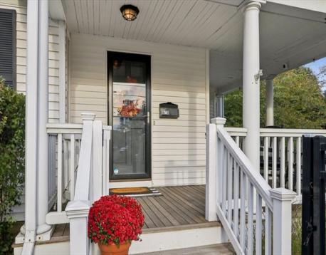 This charming 3-bedroom, 1.5-bath colonial with a mahogany farmer’s porch blends timeless character with modern updates. Move-in ready, it features high ceilings, wood floors, recessed lighting, period details, and abundant natural light from newer windows. Enjoy an updated kitchen with white cabinets, granite counters, stainless appliances, and a breakfast bar. French doors lead to a stone patio and fully fenced, landscaped yard. Additional highlights include updated systems, insulation, smart thermostat, and a partially finished basement with office, playroom, laundry, and storage.