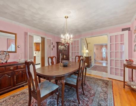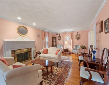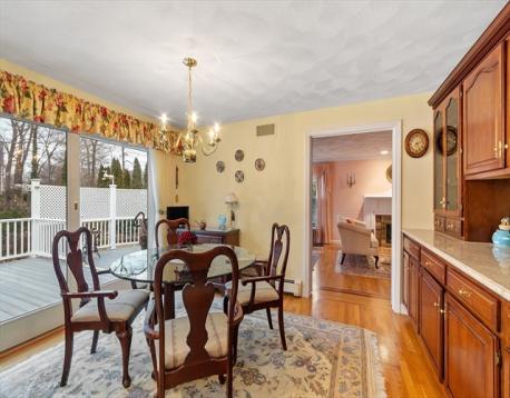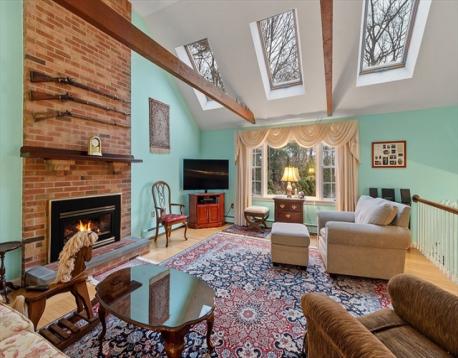 Pride of ownership shines through! Meticulously maintained colonial,ideally situated on a private 1/2 acre lot in cozy Centerville.Step into the welcoming 2-story foyer with double coat closets.Oversized kitchen is a standout feature,with Corian counters,updated appliances,abundant custom cabinetry,and a spacious eat-in area.Slider leads directly to the expansive rear deck for seamless indoor-outdoor living. French doors lead to the formal dining room, which features wainscoting, chair rails, and crown molding. The sunny,front-to-back living room has HW floors and a fireplace. On the other side of the kitchen sits the go-to spot for gathering - the spacious family room with HW floors,beamed cathedral ceiling w/three skylights,gas fireplace,and Andersen picture window overlooking the lush backyard. 1/2 bath rounds out level one. Upstairs, find the primary BR w/en-suite bath plus three additional bedrooms and another full bath. Lower level partially finished with lots of storage space.