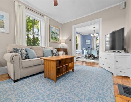 Hidden in plain sight, this spacious Colonial sits on one of the most unexpected lots near Beverly’s waterfront. Just steps from Independence Park’s sandy beach with sunrise views and summer fireworks over the harbor, life here feels like a seaside retreat. This home offers both serenity and connection. The fenced yard feels private and expansive, perfect for gathering around the fire pit or unwinding on the wide, wrap around deck. Inside, natural light pours through large windows, with a welcoming flow from the sunny kitchen to the dining and living rooms. Four bedrooms plus a third-floor bonus space offer flexibility for work, play, or guests. Across the street, a tucked-away park with a playground and sledding hill is a hidden gem. From here, stroll to downtown shops, The Cabot, or take the T Commuter Rail train in to Boston. Everything Beverly is known for is moments away, yet you'll feel like you're a world apart. Impeccably maintained and major systems upgraded. Truly turn-key.