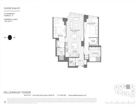 Great opportunity to get into the Millennium Tower, one of Boston's most sought-after full-service luxury condos! Millennium Tower boasts some of the city's best dedicated resident amenity spaces, including a two-floor club level with a resident lounge with food and beverage service, a 10,000-square-foot fitness facility, an indoor pool, a billiards room, a library, a sports simulator, and a common sky garden. Top-notch services include 24-hour concierge, doorman, pager, on-site management, and maintenance. 24-hour access valet parking for one car is included with the sale. Residence 3107 offers a great layout with split bedrooms, each with an en-suite bathroom. The spacious living room and open concept kitchen are ideal for entertaining. The kitchen is appointed with Poggenpohl cabinetry, stone countertops, and top-of-the-line appliances. Great VIEWS from the 31st floor via floor-to-ceiling windows and a corner bump-out window. A must-see at Millennium Tower!